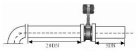 | 4.同一平面兩個彎管的安裝 如果流量計的前端有兩個90°彎頭,要保證流量計的前直管段≥20D,后直管段≥5D | ![]() | |||||||||||