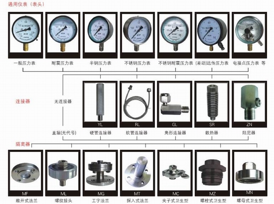 三、隔膜壓力表型號及名稱(根據上表選擇連接方式代碼):